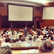 今回はハーバードの設備面を取り上げます。まず、ハーバードビジネススクール(以下「HBS」)のボストンキャンパスにはウサギとリスが生息しています、数匹というよりも数十匹は生息していると思われます。この夏、訪問した際に何とかその姿を写真に収めようと昼休みに「Aldrich Hall」の前で待ち構えてとれた写真がこれです(ウサギは写真中央)。ちなみにこの「Aldrich Hall」には90人のU字教室が10室と200人教室が1室レイアウトされており、そこで900人のMBA候補生を対象とした講義が行われております。