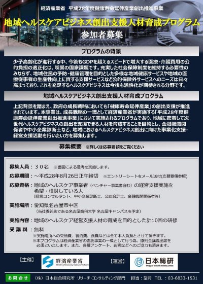 <参加者募集>地域ヘルスケアビジネス創出支援人材育成プログラム