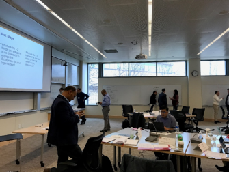 今回、私はStrategy & Innovationのトラックに絞り、日程が連続した4つのプログラムに参加しました。それぞれ「Building Game-Changing Organizations: Aligning Purpose, Performance, and People (2日間)」、「Strategies for Sustainable Business(3日間)」、「Developing and Managing a Successful Technology Strategy(2日間)」、「Innovation Ecosystems for Leaders: Delivering Sustainable Competitive Advantage(2日間)」と、各プログラムのテーマは異なるものの、有機的な繋がりを持っています。例えばStart-upと大企業に共通した課題、持続的な成長をどのように創造するか、Start-upと大企業の戦略的且つ互恵的な関わり方、といった点で体系的に学ぶことができるようになっています。参加者数はプログラムによって異なり、シーズンにもよるようですが、私が参加したものでは13名の小規模で教授陣と密なコミュニケーションがとれるものから、大規模なものでは50名のクラスまでありました。国籍はアメリカ人が5割前後、その他はサウジアラビアやUAE、南米、欧州各国、ケニアやナイジェリアといったアフリカからの参加者、そしてアジアからはインドと日本で、日本からの参加者は私一人でした。どのプログラムも、Executive Centre専用の食堂でのネットワーキング朝食から始まり、ランチも同食堂でのネットワーキング、初日の夜はネットワーキングレセプションと、プログラムの休憩時間も含めてネットワーキングの機会が提供されています。プログラムの事前準備として、ハーバードのケースやMITのレビュー記事などがコース開始の約2週間前に配布されており、それを読み込んでくることが大前提です。教授陣の講義の進め方は、プレゼンテーション資料で一通りの説明をした後、グループディスカッションやロールプレイ、個人やグループでの発表を行うスタイルで、NUCBのようなケースディスカッションは、企業での実例としての位置付けとして、一部のプログラムに限って行われました。最後はどのプログラムにも共通しているのですが、振り返ってみて自身にとっての”Take away”は何か、実務や個人の日常の中で今回学んだことをどう生かすか、を自身の言葉で書き表し、プログラムによっては教授にコールドコールで聞かれます。可能な限り、具体的に作成するよう、求められます。