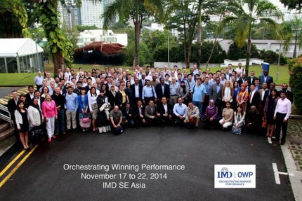 2014年11月17日から11月22日までの6日間、シンガポールで開催されましたIMDのOWP(Orchestrating Winning Performance)に参加しました。11月の中旬ということもあり、常夏のシンガポールの街もクリスマスムードでイルミネーションが綺麗でした。ただ、11月のシンガポールは雨期であり、講義の初日にIMDの折り畳み傘が配布されました。2日目以降は、殆ど毎日にわか雨が降っていた為、非常に助かりました。