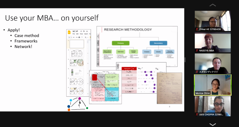 "Careers Collaboration Event" for the international students in MiM/MBA program was held virtually on Saturday, 31st July 2021, showcasing recent alumni who have successfully furthered their career in Japan. Our alumni shared their experiences and advice with current students interested in working in Japan in the future, such as insights about how they found their role, their experiences of the application and interview processes and what it was like getting settled in at their company.