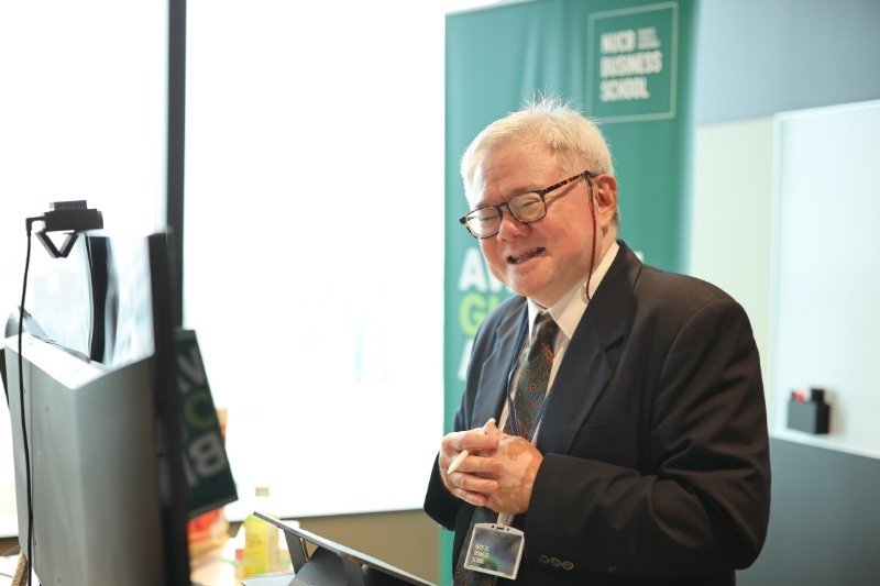 After delivering a lecture and facilitating a discussion based on a case provided by Harvard Business Publishing, participants close to home, such as faculty members joining from NUCB International College, joined others from as far away as Africa, such as faculty from Moroccan partner school ESCA School of Management, to weigh in on their takeaways from the session. "Humor can be a powerful tool in the classroom, but it can also be dangerous in this day and age" remarked one participant about the pitfalls of joking around with students. Others spoke on the importance of in-class notation, and highlighting contrasting viewpoints in order to spur deeper explorations.