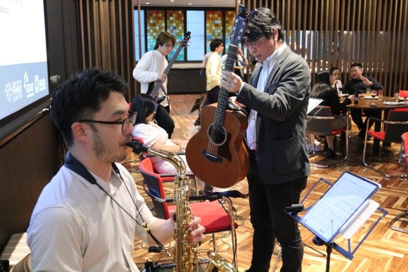 Our semesterly welcome party was held on the 3rd floor of our Marunouchi Tower Campus in Nagoya, bringing together faculty, alumni, and students of programs in English and Japanese to celebrate our newly enrolled colleagues and peers from within Japan and 23 other countries with food, drink, and live performances.