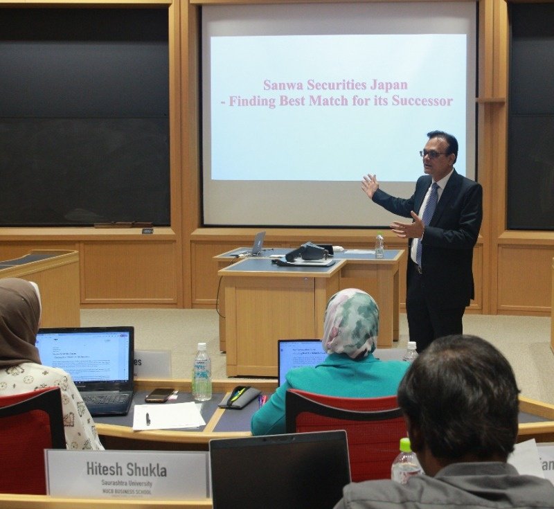 With leading like-minded practitioners in the field of business education coming together to share their experiences, the participants formed a fast fellowship amongst themselves. Together, they dove into Harvard- and NUCB Business School-published cases taught by Professor Hakeem and Professor Lim of our institution, and Professor Hitesh Shukla of Saurashtra University (India). Stepping into the role of students during these sessions put the participants on the other side of the auditorium, giving them a different perspective on how to better facilitate case discussion and manage the experiential learning done in the classroom.