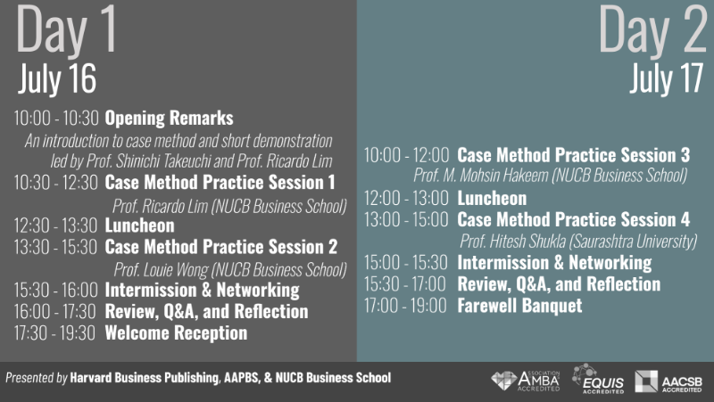 In partnership with Harvard Business Publishing (HBP) and the Association of Asia-Pacific Business Schools (AAPBS), NUCB Business School is proud to host an immersive Case Teaching Workshop aimed at enhancing pedagogical excellence.
