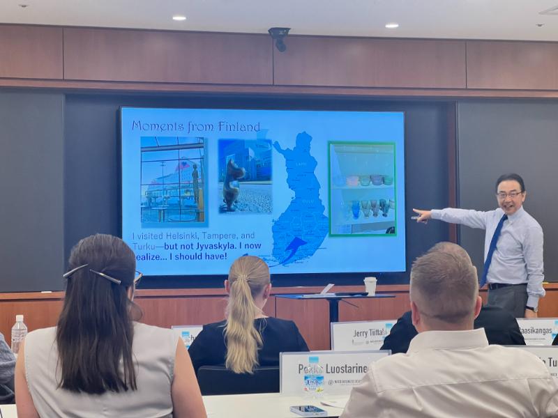 NUCB Business School recently had the honor of hosting the Executive MBA program from Jyväskylä University (JYU) in Finland for an immersive study tour across Nagoya and Tokyo. The visiting group included senior leaders from Finland’s top companies, such as Toyota Finance Finland, Kesko Corporation, HUS Hospital District, and more. From chief physicians to commercial directors, their diverse expertise and high-level positions brought a dynamic and inspiring energy to every session, making this program a truly exceptional experience at our school.