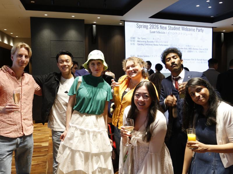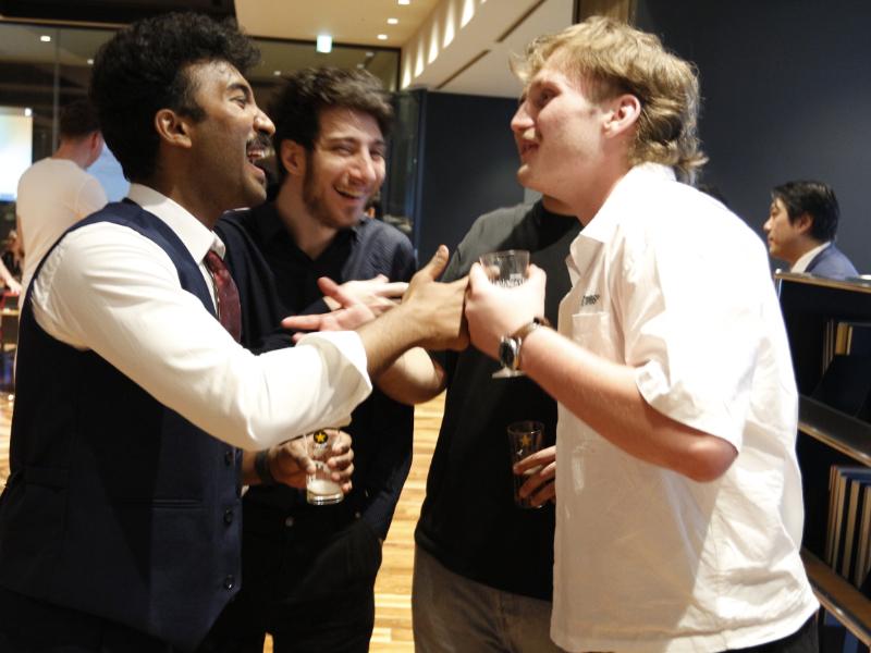 Our semesterly welcome party for new students was held on a beautiful late April evening on the 3rd floor of our Marunouchi Tower Campus in Nagoya. As the afternoon light softened into a warm golden hue and classes drew to a close, students, faculty, and alumni gathered for an evening of self-introductions, cultural exchange, and relaxed post-class celebration.