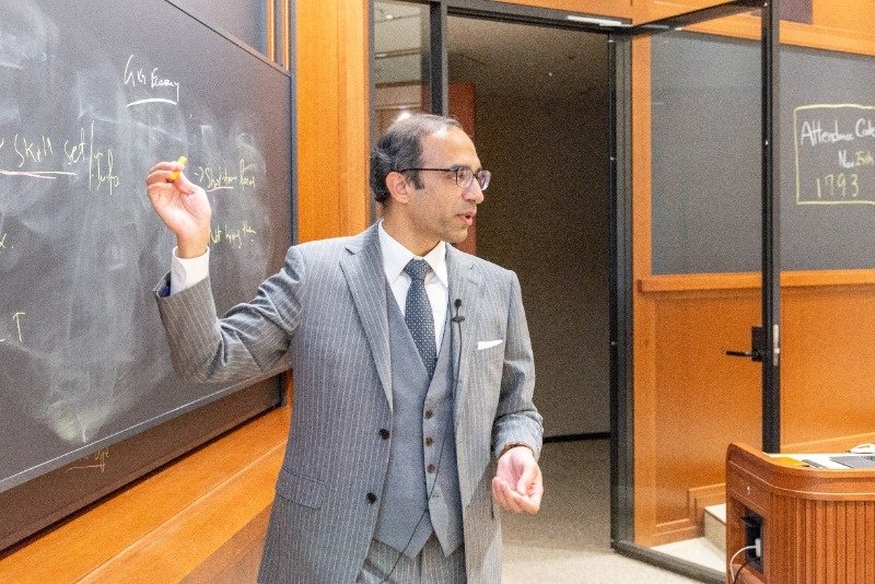 The course this fall was one of his largest ever, with almost 80 students representing more than 30 nationalities vying to make impactful contributions to class discussion.