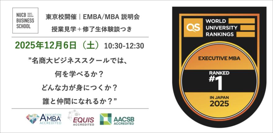 東京校では、12月6日(土)10:30~12:30にEMBA/MBAプログラム説明会を実施いたします。