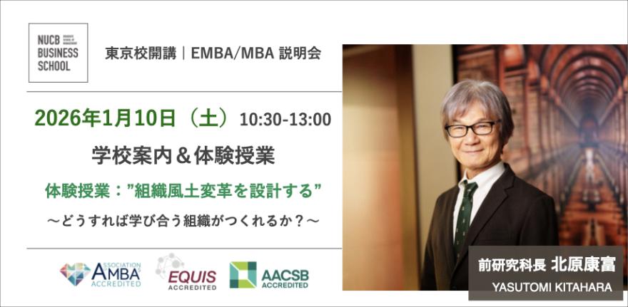 東京校では、1月10日(土)10:30~13:00に、体験授業つきEMBA/MBAプログラム説明会を実施いたします。