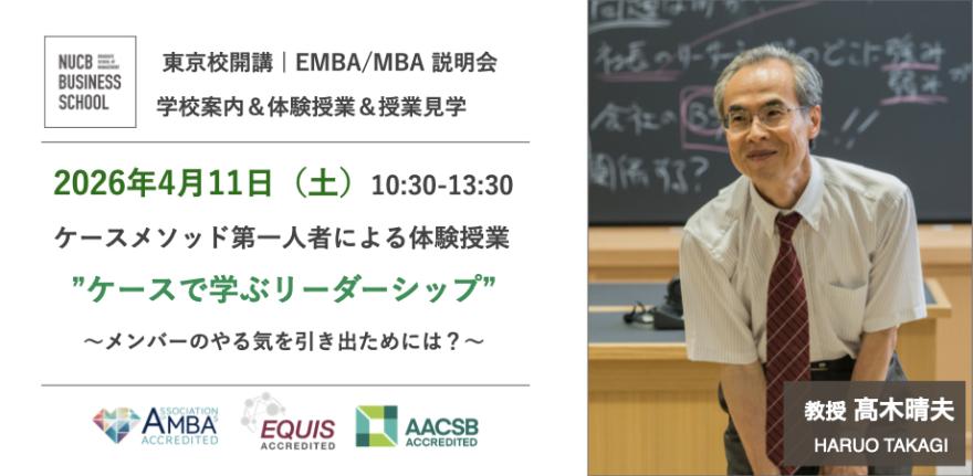 4/11(土)10:30~13:30、東京校では、日本におけるケースメソッド第一人者であり、組織行動学を専門とし長年にわたりMBAで「組織マネジメント」科目を教えてきた髙木晴夫教授をお招きして「多様化時代の組織とリーダーシップ」をテーマにした体験授業、さらに、実施に開講している授業の見学がついた説明会を実施いたします。