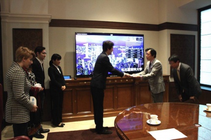 チャリティーバザーの売り上げを寄付金として、本日寄付金贈呈式を大学院にて行いました。