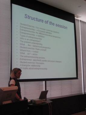 Dr.Klappers lecture is a mix of theory and practice, with a deliberate focus on European and in particular French entrepreneurship. She also presented some of the work she has been doing with her students in France. The