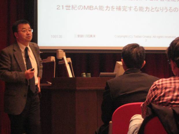 株式会社三重銀行冠講座としてビジネス公開講座を開催しました。第2回は人事コンサルティングの第一線で活躍している大中忠夫教授が講演しました。テーマは「21世紀型MBAの学び方 活かし方」。従来の欧米型MBAの課題と、これからの日本型MBAの可能性と活かし方についてお話ししました。