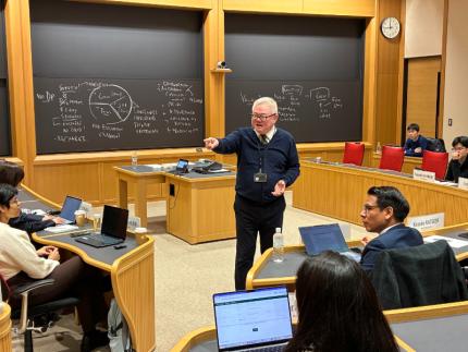 名商大ビジネススクールは、2025年度日経ビジネススクールとの共催プログラム「Leading High-Performance Teams」(LHPT)英語コースの締めくくりとして、2026年1月23日に「振り返り」を実施しました。同プログラムは、2023年度から名古屋校で毎年11月第一週目に4日間の集中講義として実施され、本学の英語MBAに在籍する外国人留学生と、企業から派遣された社会人が一緒のクラスで学びます。この「振り返り」日にも、「M-KOPA Solar:Using Digital Disruption to Connect the World's Poor」や他の2つのケース教材をもとに、11月に受講した集中講義後、約2か間の期間に、参加者が集中講義で学修したことをいかに自身の業務に反映させることができたか、自分事とすることができたかなど、について、クラスディスカッションを通して共有しました。