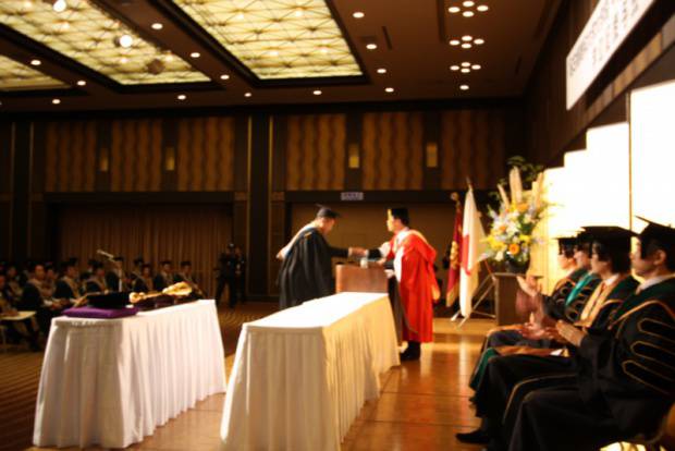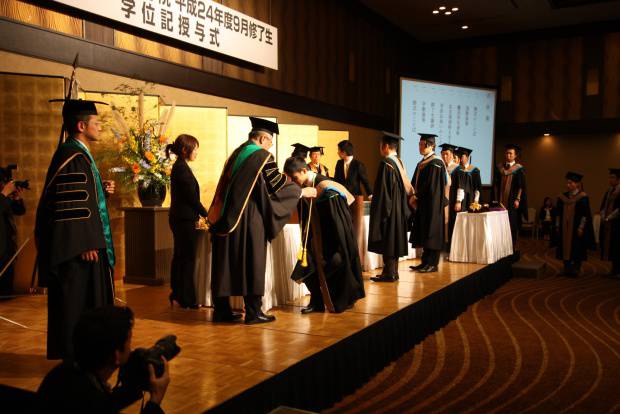 平成24年度9月学位記授与式開催 2012/09/29 Sat 本日9/29(土)、平成24年度9月学位記授与式が行われました。 マネジメント研究科49名、会計ファイナンス研究科28名、合計77名が本日大学院を修了されました。修了生のみなさま、おめでとうございます。 厳しい社会、経済情勢が続いており、修了生の方が各々の目標としていたキャリアプラン実現していくのは非常に困難な状況であるとは思います。しかし、本学でしっかりと学修された学生たちだからこそ、新しい未来を切り開いてくれる、新しい風を吹かせてくれると、学園関係者一同,心より期待いたしております。