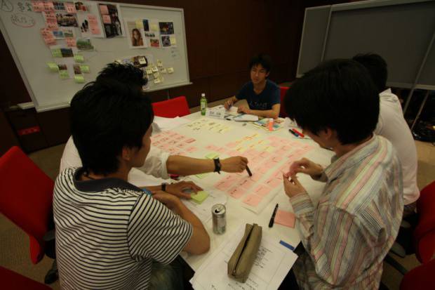グループディスカッションでは、インターネットを駆使したソーシャルマーケティングを使い、それと今ある事業と組み合わせたら新たな事業形態ができるのでは???と、新しいビジネスモデルについて討議をしていました。学生のみなさんはIDEOのブレーンストーミングに習い、短時間で100ほどの新しいアイデアを発掘していました。