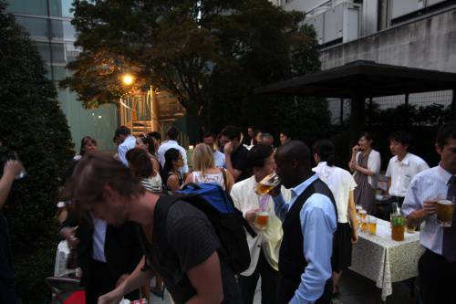 伏見キャンパスで留学生との交流を深めるビアパーティーを開催しました 2013/07/19 Fri 本学学長主催のビアパーティーが伏見キャンパスにて行われました。40名の留学生、日本人が参加し、冷えたビールを片手に日本語と英語にて交流を深めました。