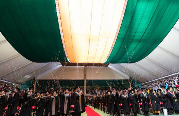 3月21日、名古屋商科大学 日進キャンパスにて平成25年度3月期学位授与式が行われました。今回、大学院の修了者は76名ですが、学位記授与式は大学・大学院合同で行われるため、総勢800名近くの方が参加され圧巻です。