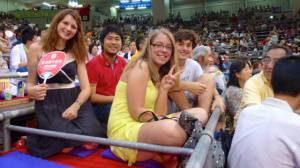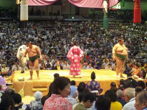 交換留学生が大相撲名古屋場所に行ってきました《Global MBA》 2014/07/24 Thu 先日、幸運にも学長からプレゼントされたチケットに当選した4名の交換留学生が、大相撲名古屋場所を観にいってきました。土俵にとても近い席で迫力ある日本の伝統スポーツを楽しみ、忘れられない日本の思い出になったようです。
