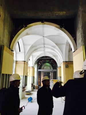 1階エントランスは、14世紀の中世ヨーロッパを思わせる天井。まるで美術館の回廊のようです。