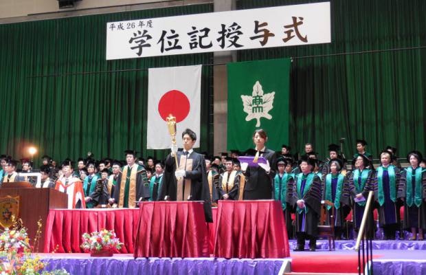 名古屋商科大学日進キャンパスで3月21日、平成26年3月修了生の学位授与式が挙行されました。