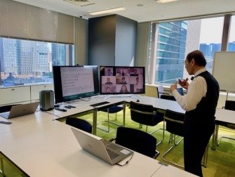 緊急事態宣言の発令を受けて、東京校に新設された遠隔授業スタジオから、オンラインによる対面遠隔形式の授業が開講されました。本学では、4月からのオンライン授業への移行に際し、教員・受講生それぞれに対してオリエンテーションを実施するなどテクニカルなスキルアップのみならず、オンライン授業の強みや弱みの理解をも深めて参りました。