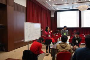 「あなたが心地よいと思うホテルの部屋とは?」というお題で、グループに分かれて理想のホテルの部屋のイメージを絵にします。