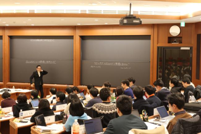 本授業では、まず最初にイノベーションの理論と実践について革新的な技術を用いたイノベーションを題材とした教材ケースを分析しながら学修し、短期と長期の戦略的選択、トップダウンの意思決定、企業文化と起業家精神の関係性などについてクラス討議をしました。